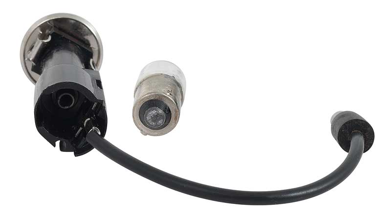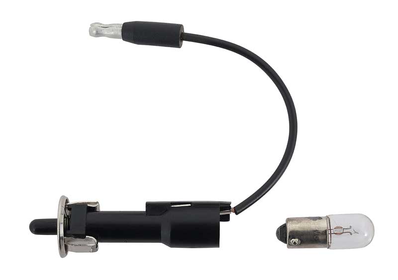 It's easy and economical to add or replace the glove box lamp in your classic vehicle. This unique lamp includes the bulb socket and activation switch in one unit. Features an original style incandescent bulb and short power wire with OEM style bullet connector. Factory style "push-in" base fits into a grounded 19/32" hole in the dash panel. The light is activated each time the glove box door opens.