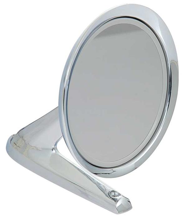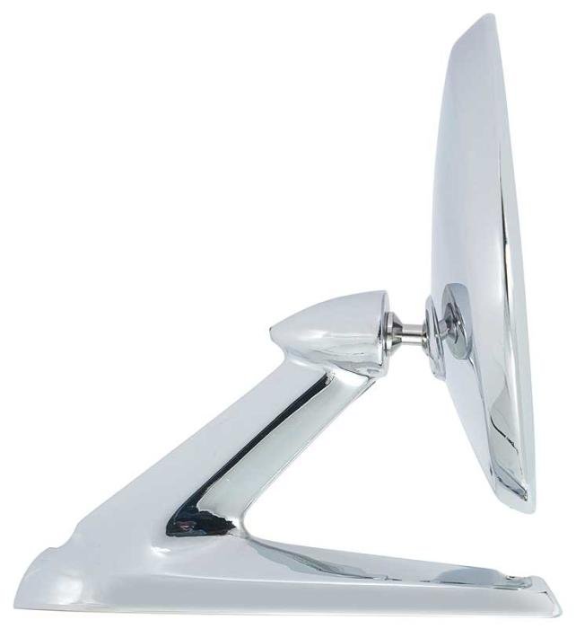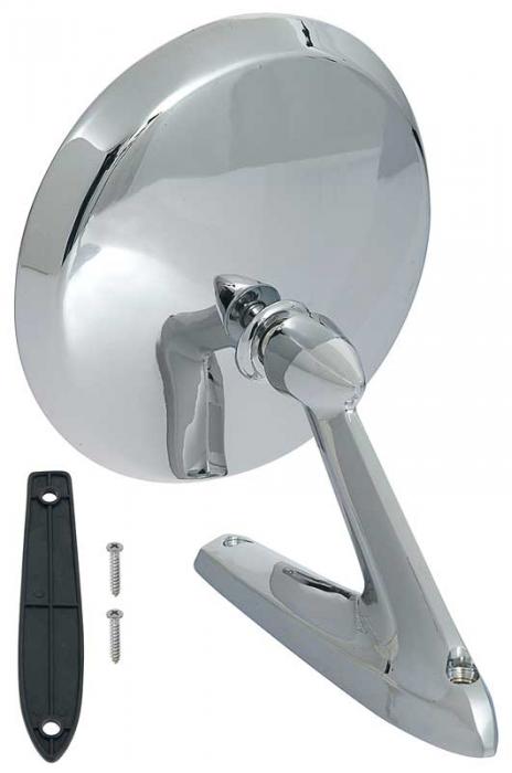 Excellent quality reproduction outer door mirror for 1964-66 Mustang and various other 1960-66 Ford models as listed. This highly polished chrome mirror is an excellent reproduction of the original mirror on Mustang models. Can also be used as a service replacement mirror for 1966-67 Bronco. Manufactured in zinc die-cast material, each mirror replicates the original Mustang mirror in every detail. Installs on the drivers door with the included mirror mounting gasket and attaching screws for installation. Base is 5-1/8 " long and 4-1/4" between the mounting holes. For use on RH or LH doors. Sold individually. NOTE: Because of the similarities in design, this mirror is often used as a service replacement mirror for 1966-67 Bronco models.