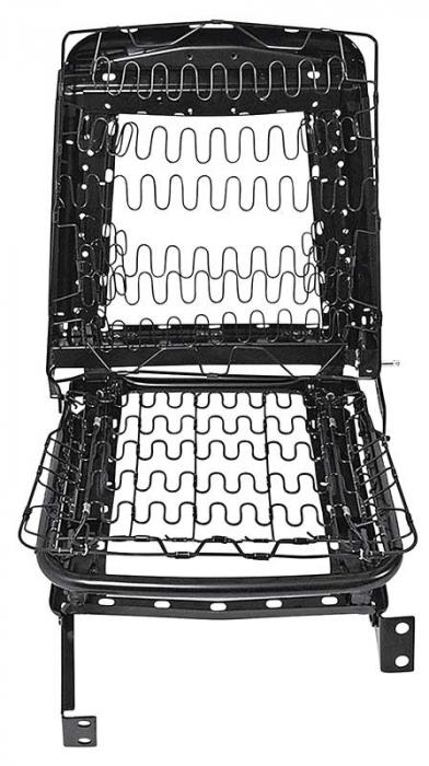 Reproduction seat frame assembly for 1966-77 Ford Bronco models. Each seat assembly is manufactured in quality stamped steel to original factory specifications that replicates the original in design, appearance, and fitment. This all-steel seat frame comes fully assembled and ready to add seat foam and upholstery. Includes are the seat back, seat bottom, seat spring assemblies, seat frame, and seat track. Fits LH, driver side.