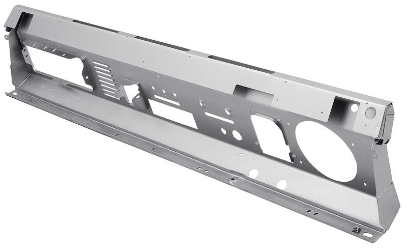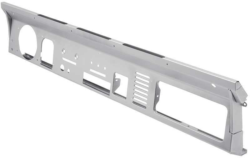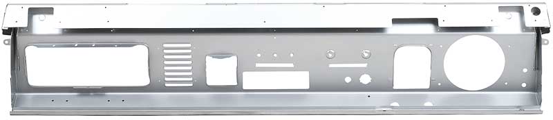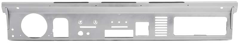 Reproduction dash panel assembly for 1966-77 Ford Broncos. This stamped steel panel features a stock dash layout with the addition of a single DIN radio hole pre-cut into the dash. All other holes are in the original locations. Replaces Ford part# D4TZ-9604320-A.