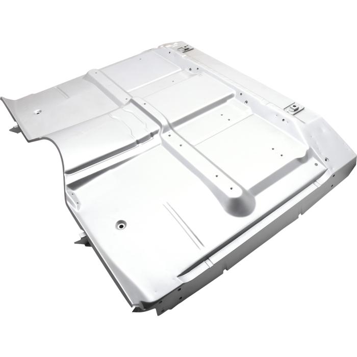 Reproduction of the original full cab floor pan designed for use with 1967-72 Chevrolet and GMC pickup models with low hump floor. This panel is set up specifically for bucket seat models. A premier pan with more accurate features, correct measurements, and correct rocker areas that puts other pans on the market to shame. Time is money. This is the right panel for the job, greatly reducing the installation time. Manufactured to factory specifications featuring original style contours and pre-installed underside braces finished in Weld-Thru primer to make installation more convenient. With Weld-Thru primer, grinding and paint removal is not necessary. The coating allows you to weld the panel through the primer, saving hours of work in the process.