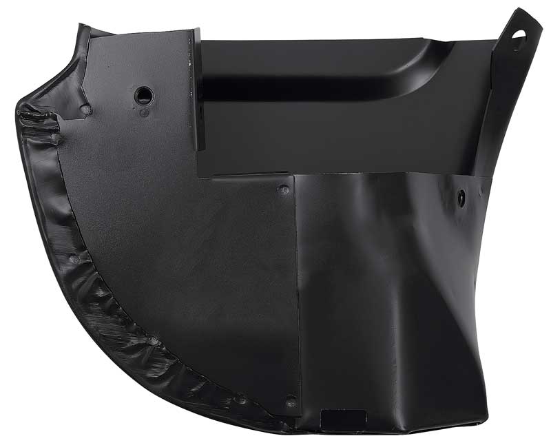 Front fender repair panel for 1967-72 Chevrolet and GMC truck models. This repair panel is manufactured in quality stamped steel replicating the original configuration and appearance. Installs on the lower front section of the front fender and replaces the old, damaged, or rusted area without replacing the entire panel. Comes finished in black EDP coating for rust or corrosion resistance. 8" X 13".