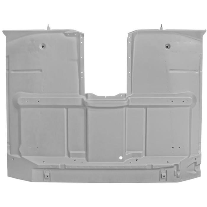 Reproduction of the original full cab floor pan for 1967-72 Chevrolet and GMC pickup truck models with high hump floor. Each floor panel is manufactured in stamped steel to original factory specifications featuring correct contours for an authentic appearance and fit. Features pre-installed underside braces and finished in Weld-Thru primer to make welding installation more convenient. This panel is designed specifically for bench seat models. Grinding and paint removal is not necessary with our exclusive Weld-Thru primer which, as the name suggests, allows you to weld the panel through the primer, saving hours of work in the process. This is the right panel for the job, greatly reducing the installation time.