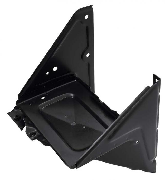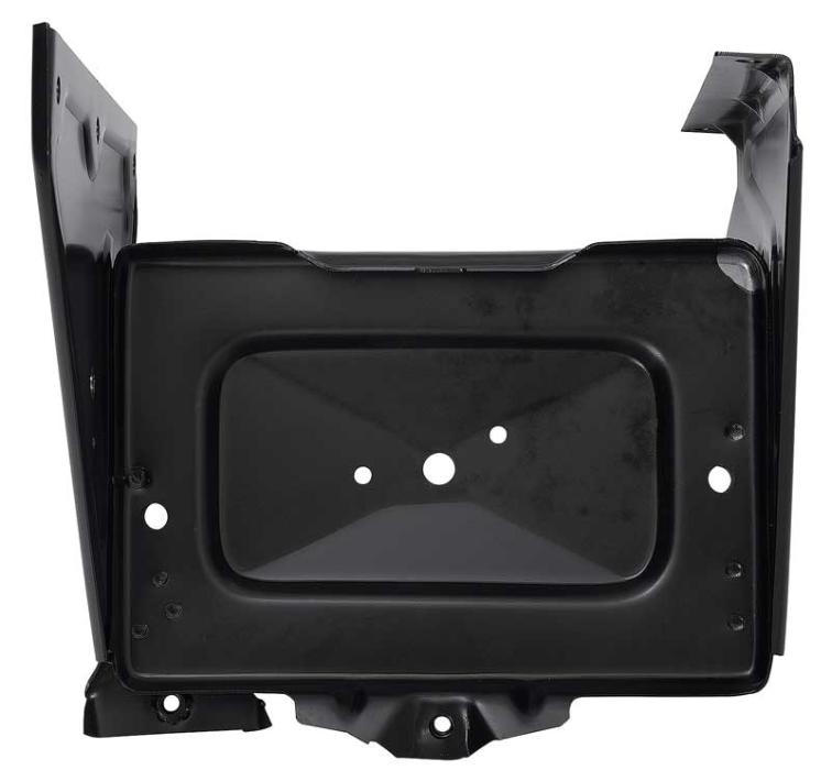 Reproduction of the original complete battery tray designed for Chevrolet and GMC pickup, Blazer, Jimmy and Suburban models. Manufactured in quality stamped steel to original GM specifications featuring correct mounting points, pre-drilled mounting holes along with an AC hose bracket pre-installed on the tray. After just a few short years, the battery tray can corride due to a number of reasons such as rust, damage from accidents, or corrosion due to leaks or cracks in the battery, especially with conventional batteries. Comes in black EDP coating for rust prevention.