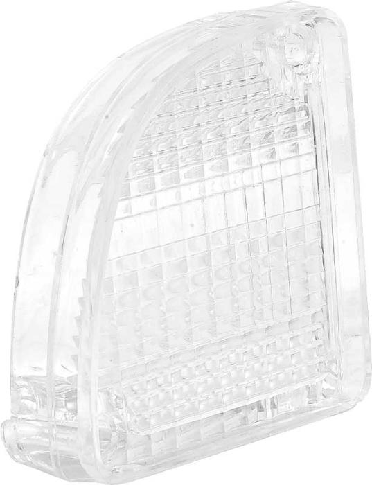 Reproduction of the original rear back-up lamp lens designed for use on 1967-72 Fleetside pickup trucks, 1969-72 Blazer, and 1970-72 GMC Jimmy models. Each lens is manufactured in injection molded clear acrylic ABS lens material matching the original in quality and appearance. Each lens includes the correct verbage including SAE and "Guide" markings.