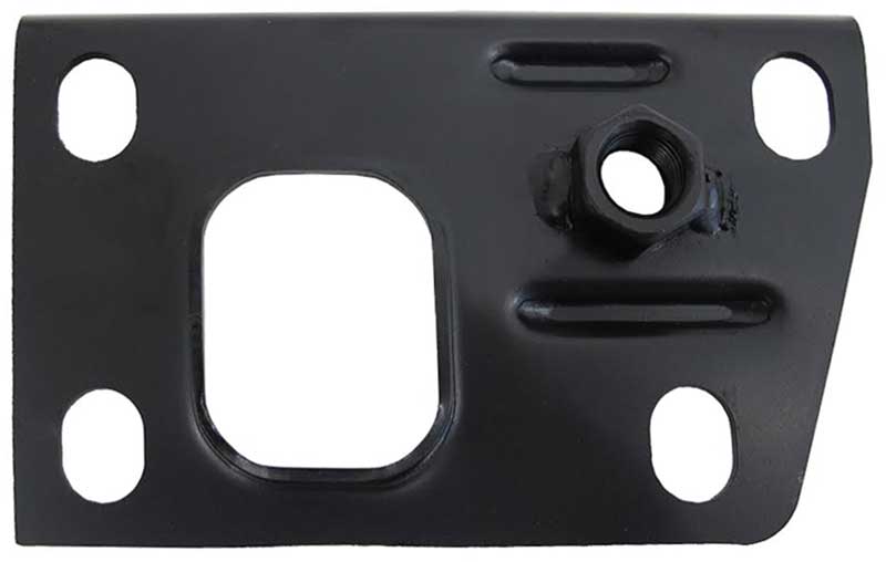 Reproduction hood lock catch support or striker plate for 1967-80 Chevrolet and GMC trucks and SUV models (without inner cable-operated hood release). Each support is produced in stamped steel with the threaded nut welded in place for the hood striker bolt. Comes finished in EDP coating for corrosion resistance. Replaces OE # 3888583, or 14016591. Hood striker bolt is sold separately.