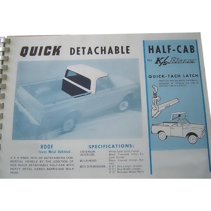 Reproduction stamped steel detachable half cab roof panel for 1969-72 Blazer and Jimmy models. Converts your Blazer or Jimmy driver and passenger compartment into a weatherproof area for added comfort in rainy, hot, or cold weather. Manufactured in heavy gauge stamped steel for durability. A stamped steel front bed panel or cargo barricade bulkhead is sold separately to completely seal off your passenger area from the cargo area. For bed panel, refer to part number # 155231.