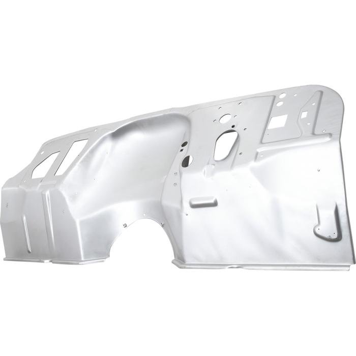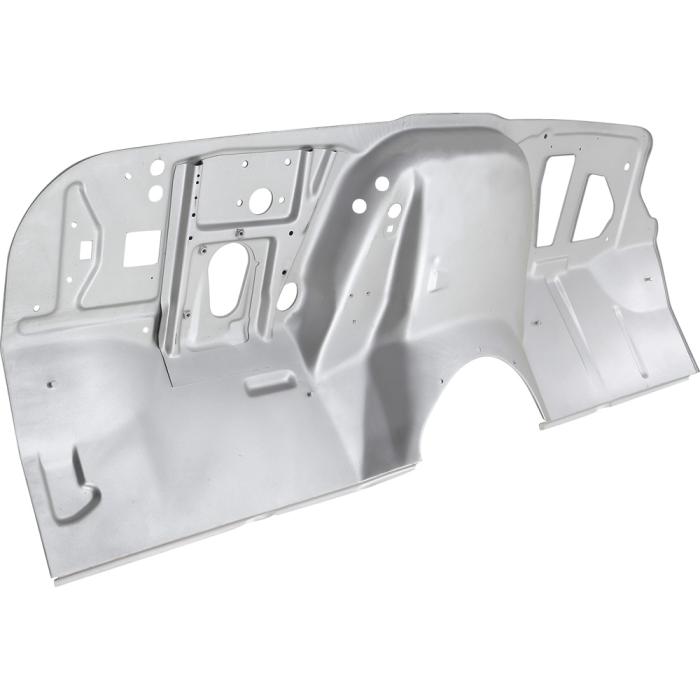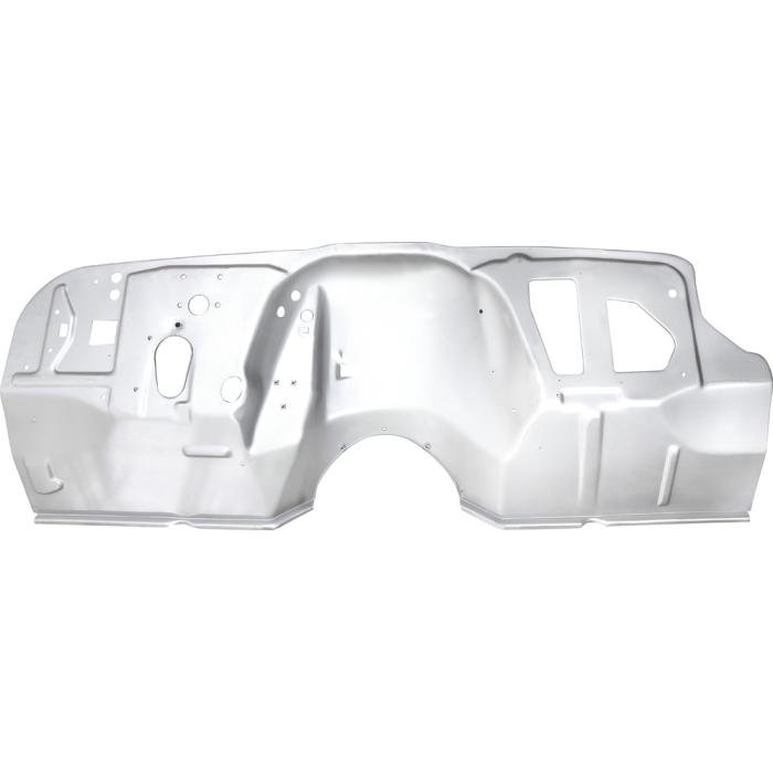 Reproduction firewall panel for 1969-1972 Chevrolet and GMC truck models without factory air conditioning and equipped with 4-wheel drive. Each firewall panel is manufactured in stamped steel to original factory specifications, featuring correct contours, factory holes, and pre-cut openings for an authentic appearance and fit. A convenient solution for repairing rusted or damaged firewalls with a correctly configured replacement panel. Finished in exclusive Weld-Thru? primer coating for easier installation with no grinding or EDP removal required before welding into place.