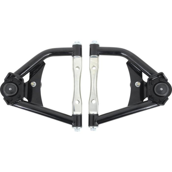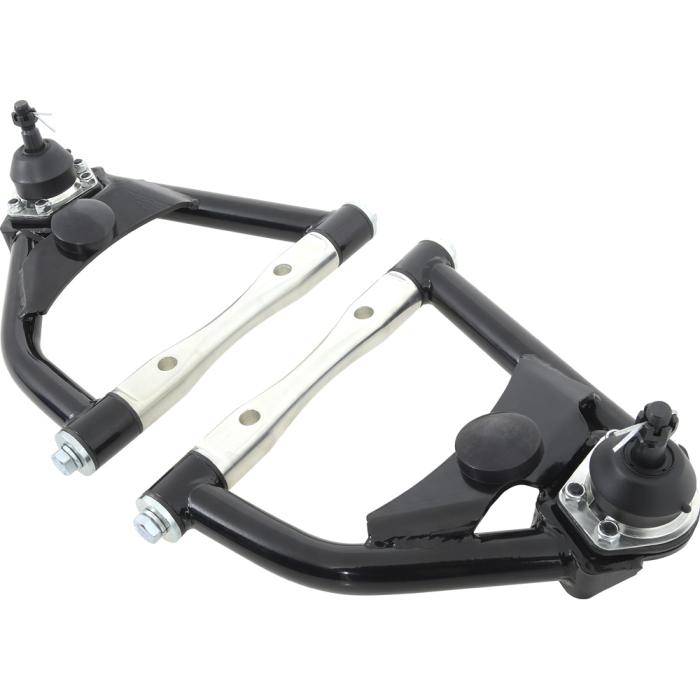 Replacement style tubular upper control arms designed for 1971-72 Chevrolet and GMC truck models. These upper control arms are manufactured from heavy gauge tubular steel. Each control arm is finished in black powdercoat for an authentic appearance. Features upgraded bushings, bumpers and ball joints.