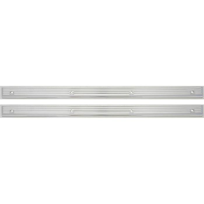 Reproduction of the original front inner door sill plates for use with 1972-93 Dodge D/W-Series pickup truck models. Each sill plate set is manufactured to factory specifications and features a bright anodized aluminum finish. Replacement moldings for the inner sill plates positioned closest to the passenger compartment, or toward the inside of the vehicle, and fits the RH and the LH side. Sold as a pair. One pair required per vehicle.