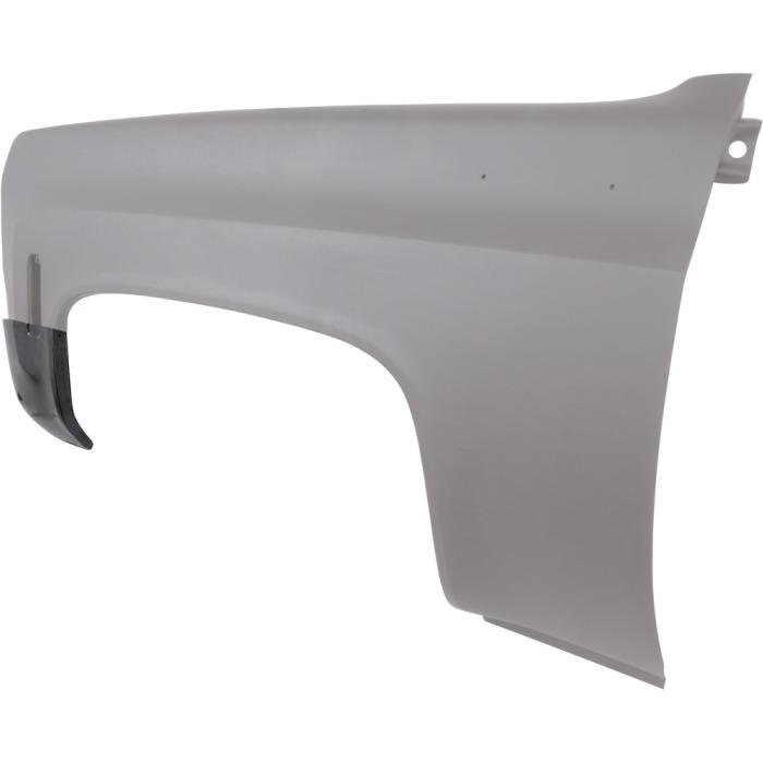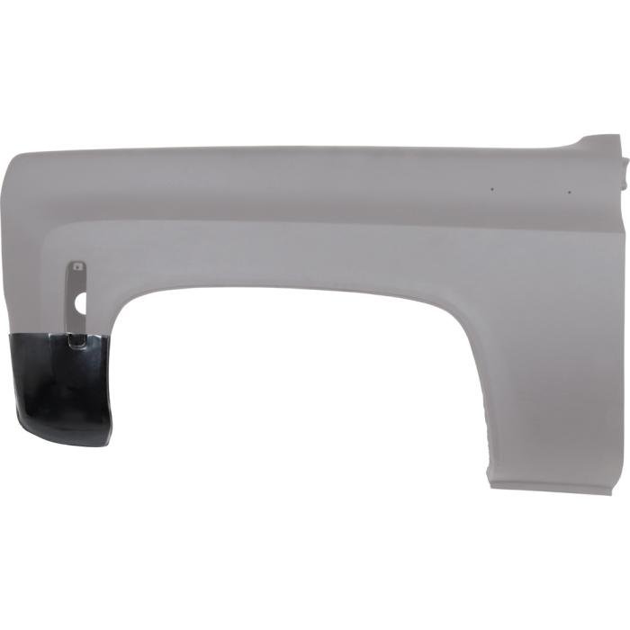 Repair panel for the rear lower section of the front fender (behind the wheel well) for 1973-86 Chevrolet and GMC C/K and 1987-91 Chevrolet and GMC R/V pickup and SUV models. Each repair panel is manufactured to replicate the factory configuration, allowing the rusted or damaged area to be replaced without replacing the entire front fender. Measures approximately 12" tall. For use on the rear portion of the RH, passenger side front fender.