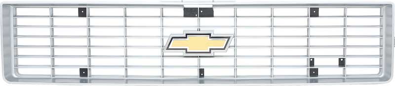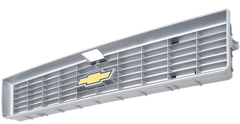 Reproduction of the original grill for use with 1973-74 Chevrolet Pickup, Blazer and Suburban models. Each grill is manufactured to original specifications with the correct center grill emblem. Made like OE GM grill on new tools. Each injection molded grille features the correct shape, size, bends, tabs, holes and argent gray color, like original. Foil Bowtie logo emblem is the correct shape, size, script and color. Replaces GM part numbers 331573, 6280858.