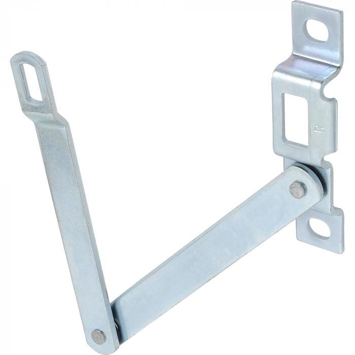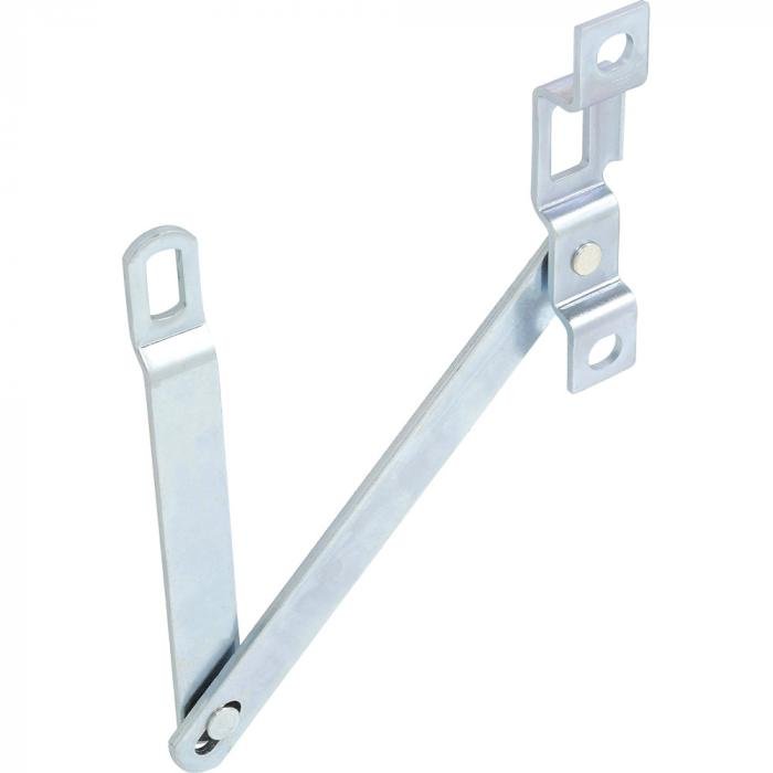 Reproduction of the original tailgate support link hinge assembly for 1st design 1976-86 C/K Chevrolet and GMC Fleetside pickup truck models. Each support is manufactured in stamped steel replicating the original. Features correct mounting points for installation. Includes latch striker plate. This is the 1976 1st design support link that does not have the requirement for the stud for mounting.