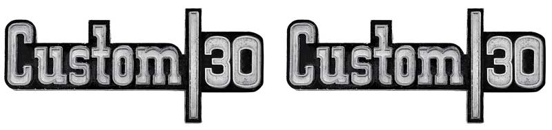 OER reproduction of the "CUSTOM 30" emblem set that mounts to each front fender of a 1973-76 Chevrolet C30 pickup. Each emblem set is die-cast, chrome plated, and painted with correct accent colors as original. Comes with the mounting nuts for an easy installation. Manufactured with correct markings on the back of emblems for complete originality. Officially licensed GM Restoration Part. Replaces OE GM part number 328850 or 6273125. Sold as a pair. One pair required per vehicle.