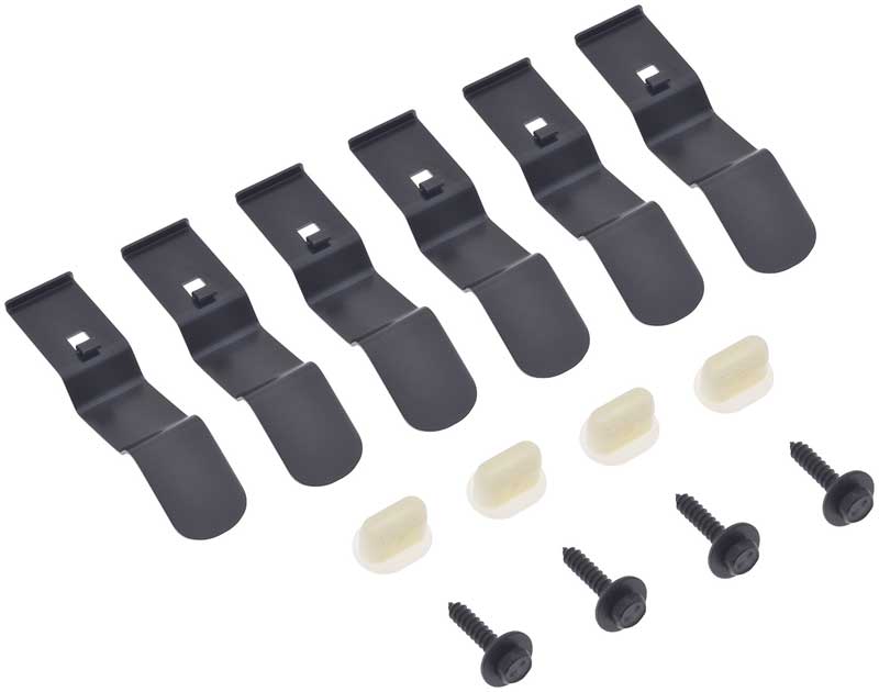 Reproduction of the original clips and mounting hardware designed to install a 1973-78 Chevrolet or GMC truck dash pad. This set includes 6 dash pad clips, 4 screws and 4 plastic insert mounts. 14 piece hardware set.