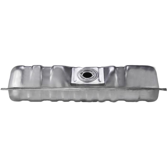 Reproduction rear / aft mount gas tank for 1973-78 Ford F-100, F-150, F-250, F-350 Pickup Trucks. This direct replacement steel tank installs in the stock location using the original hardware. Tank measures 34-3/4 in. x 27 in. x 8-1/8 in and holds 19 gallons of fuel. Features vent pipe toward rear of truck. Straps not included, sold separately. Replaces OE # D8TZ-9002-M.