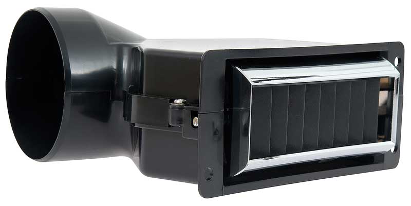 Reproduction air deflector vent assembly for 1973-80 Chevrolet and GMC pickup truck, Blazer, Jimmy, and Suburban models with or without air conditioning. Manufactured in injection molded ABS, the housing comes molded in black, while the vent is chrome plated with black deflectors to perfectly match the original factory vent assembies.