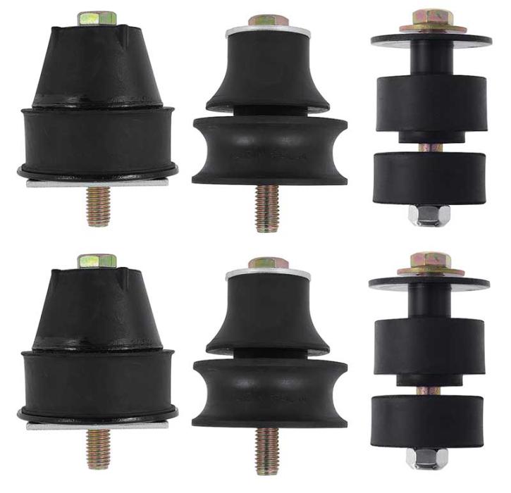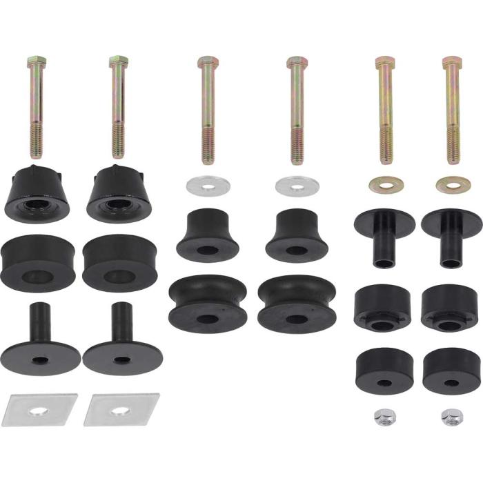 Reproduction of the original body mount set for 1973-1980 Chevrolet and GMC standard cab pickup truck models with 1/2 ton, 2-wheel drive configurations. Each 30-piece kit includes radiator core support bushings and hardware, along with cab mounting bushings and hardware. Designed specifically to fit 1/2 ton 2WD C10 pickup models only.