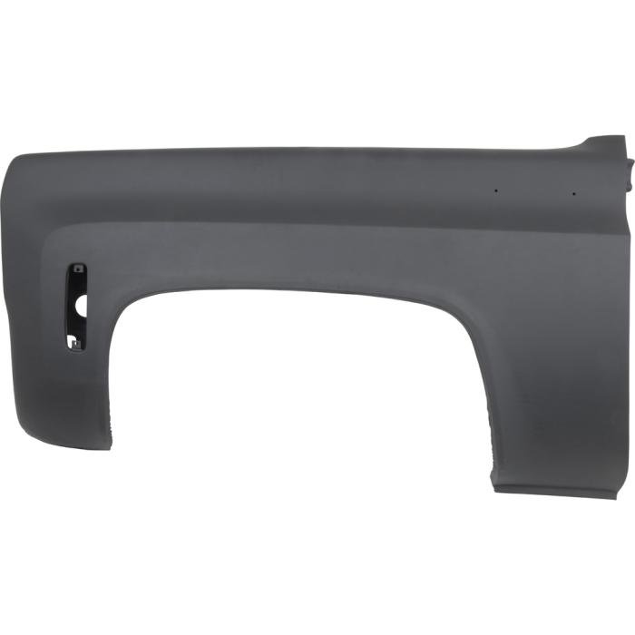 Replacement front fender designed for various Chevrolet and GMC pickup, Suburban, Blazer, and Jimmy models. Each standard quality front fender is manufactured in stamped steel replicating the original in design and fitment. Offers driver quality at an affordable price, with correct provisions and mounting points for installation. Includes pre-cut opening for side marker lamp assembly. Comes with a black EDP coating for rust resistance.