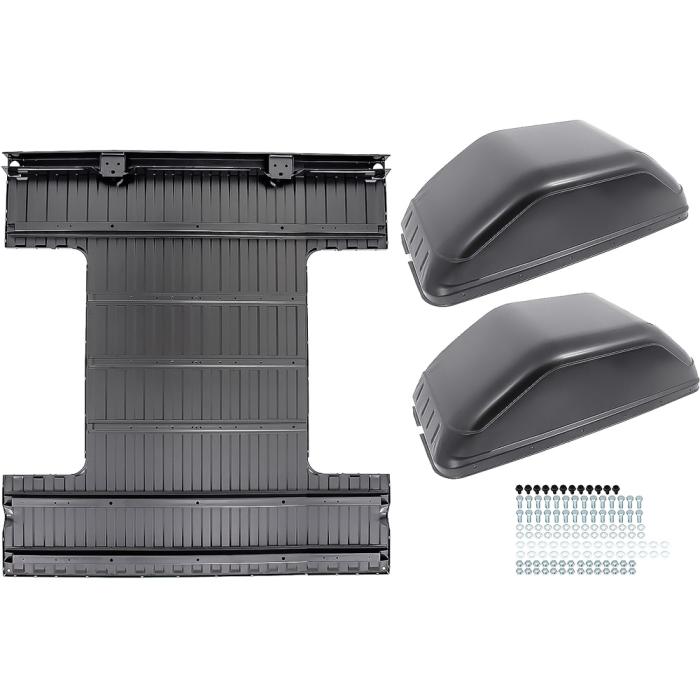 Tubbed full bed floor panel set for 1973-86 Chevrolet and GMC and 1987-91 Fleetside short bed models. Each complete bed floor panel mini-tub kit is manufactured in quality stamped steel and comes with the lower bracing and both the LH and RH mini-tubs. Not for use on stepside models. Comes with bolt set that attaches the wheel houses to the bed on steel bed fleetside trucks. Floor and 4" wider tubs come finished in black EDP coating for corrosion resistance.