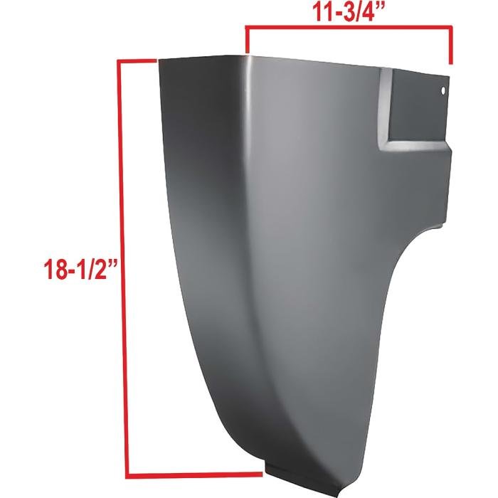 Reproduction outer corner repair panel section for 1973-1986 C/K and 1987-91 R/V Chevrolet and GMC square body pickup truck models. Each repair panel is manufactured in quality stamped steel to the OE configuration, matching the existing corner section. Designed to replace rusted, damaged, or corroded corner areas when replacing the entire panel is not necessary. Measures approximately 11-3/4" wide by 18-1/2" tall. Constructed from 19-gauge sheet metal and finished in black EDP coating for rust and corrosion resistance.
