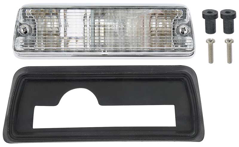 Reproduction of the original style cargo lamp assembly designed for use with 1973-87 Chevrolet and GMC truck models with cargo lamps. Each cargo lamp assembly is manufactured to correct factory specifications replicating the original for an authentic replacement. Dimensions: 6-5/8" L x 2-1/4" W x 1-1/2" T. The gasket is approximately 1/4" longer and wider.