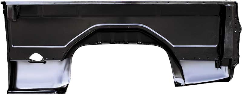 Reproduction short bed side panel for 1973-1986 Chevrolet and GMC C/K and 1987-1991 R/V Fleetside pickup truck models. Each bed panel is manufactured in quality OE gauge stamped steel to replicate the original factory panel for a total replacement of your damaged or rusted original bed side.
