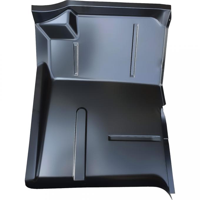 All-new tooling and thicker steel make this floor panel a huge step above others in quality of materials and fitment. The new tooling and thicker steel ensures clean crisp lines without the excessive wrinkling found in the bends of the economy panels that are currently in the market. This is a drop-in style front floor pan repair panel section for 1973-86 Chevrolet and GMC truck models. Manufactured in quality stamped steel to OE specifications replicating the original floor pan design. Will replace the damaged or rusted original floor panel with toe board extension. Measures 35" long x 31' wide. Comes finished with EDP coating for rust and corrosion prevention. Fits RH, passenger side.