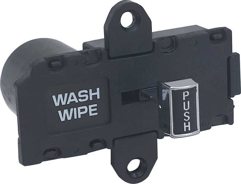 The correct replacement windshield wiper switch for 1975-1976 Chevrolet and GMC pickup, Blazer, Jimmy, and Suburban models, along with 1977 models without pulse wipers. This reproduction replaces the old or worn-out original exactly. Features the correct "Wash / Wipe" lettering and "Push" lettering on the switch knob.