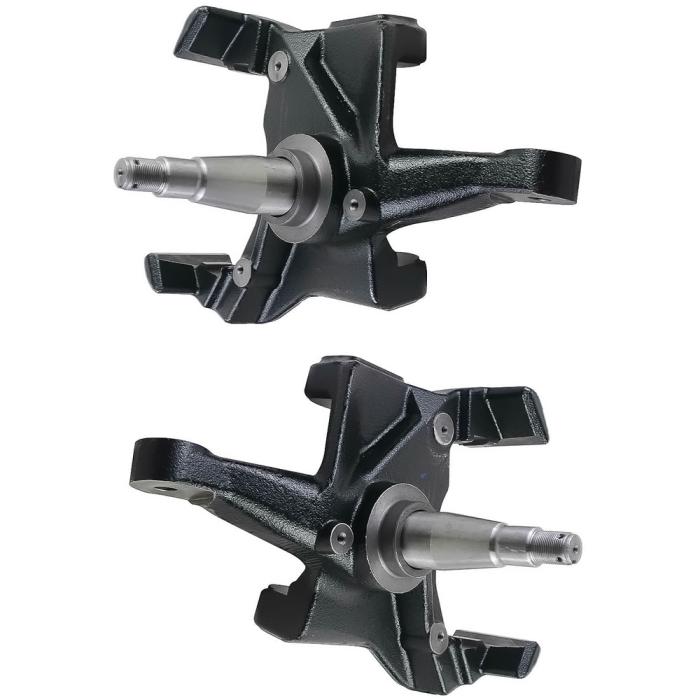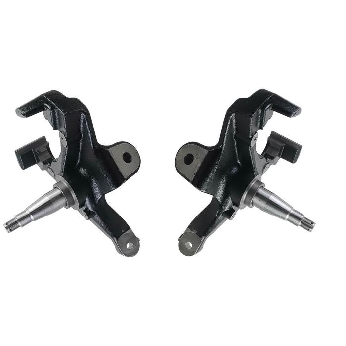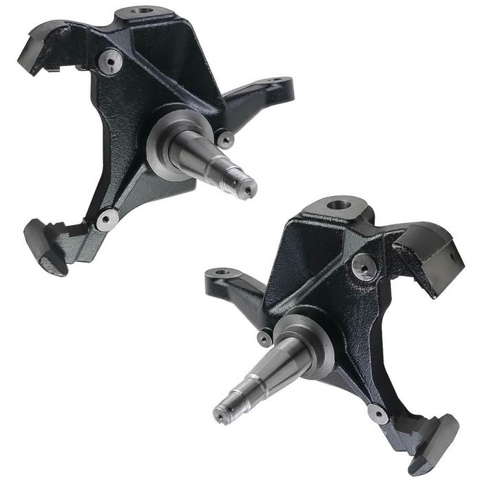 Drop spindles are the best way to lower your truck while preserving stock ride quality, suspension geometry, and overall handling. This high strength kit includes a matched pair of 3 inch lowering spindles designed specifically for 1 Ton 2WD truck models equipped with clip on style brake calipers. Manufactured from premium grade iron for long term durability, these spindles provide an aggressive 3 inch front drop while maintaining smooth, controlled ride characteristics. Sold as a pair.