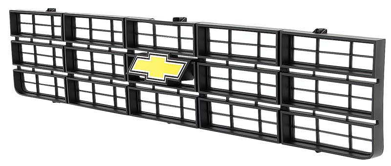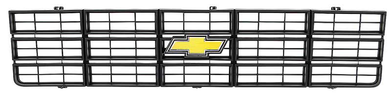 Reproduction plastic grill for 1977-79 Chevrolet C/K Pickup, Blazer & Suburban models. Each grill is manufactured to original specifications with the correct center grill emblem, and will bolt in using factory mounting locations. This grill features the correct black finish. Made like OE on new tools. Each injection molded grille features the correct shape, size, bends, tabs, holes and finish, like original. Foil Bow Tie logo emblem comes pre-installed. However, a premium die-cast emblem can be installed, if desired. The die-cast emblem is sold separately under part # T70865. This grill replaces GM part #'s 14000078.