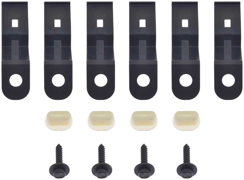 Reproduction clips and mounting hardware to install 1979-86 Chevrolet and GMC C/K, and 1987-91 R/V truck and SUV model dash pads. This set includes 6 dash pad clips, 4 screws and 4 plastic insert mounts. 14 piece hardware set.
