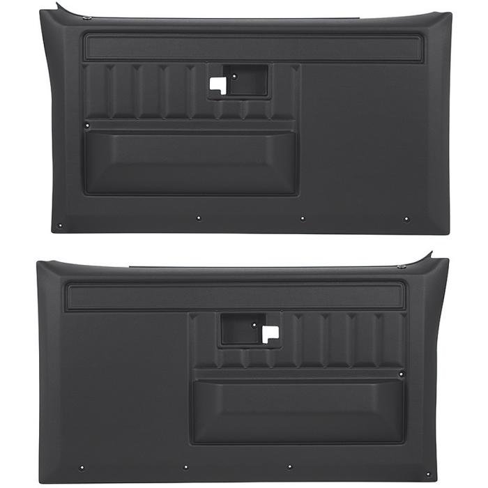Replacement front door panels for 1981-86 C/K pickup, Blazer, Jimmy, Suburban, and 1987-91 Chevy, GMC R/V pickup, Blazer, Jimmy, and Suburban models. Replacement Door Panel Sets come pre-marked on the back of the panel for window/lock switches, trim locations, and are designed to accept all the original GM switches and components. Mounting hardware included. Sold in pairs.