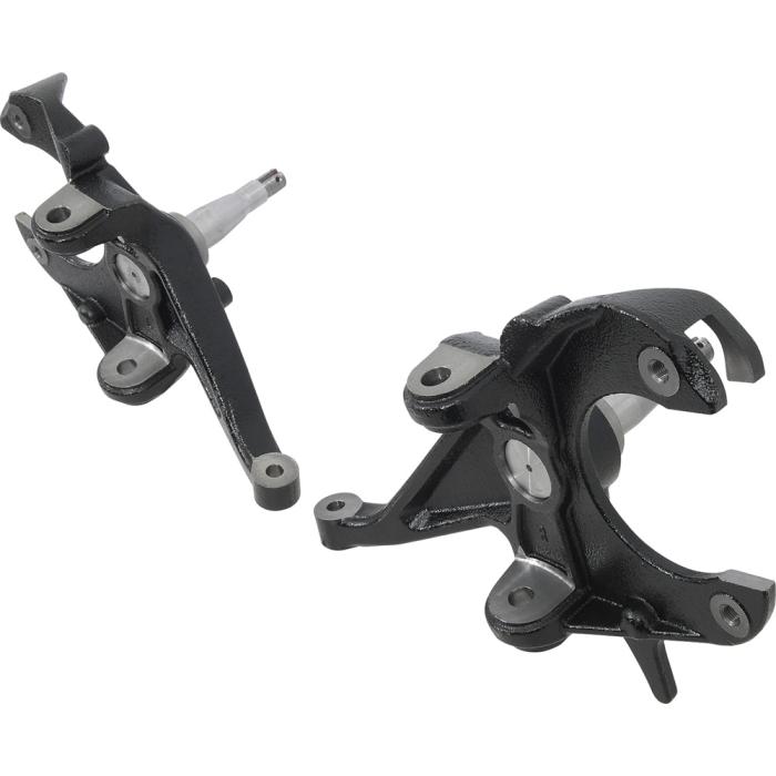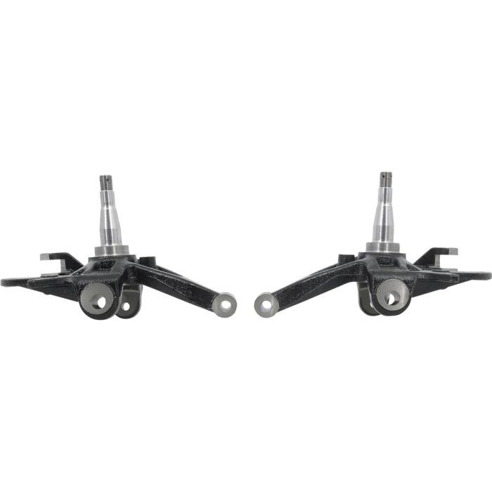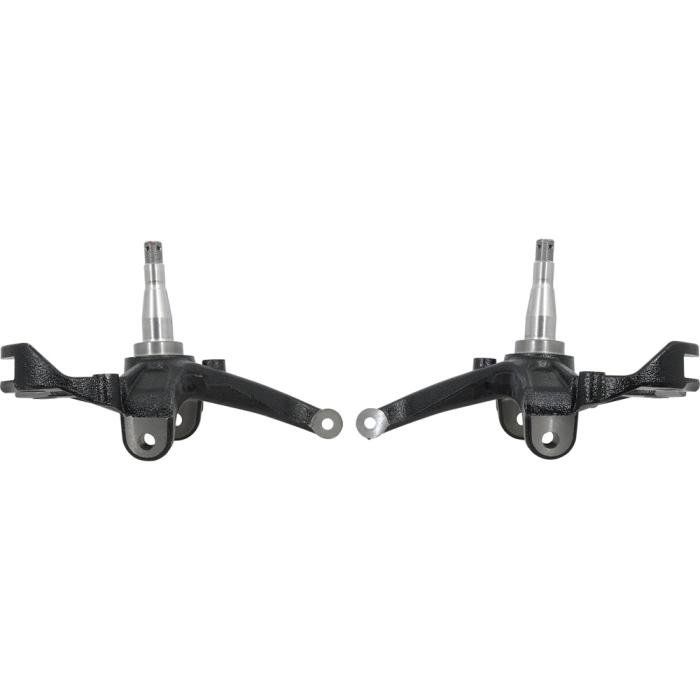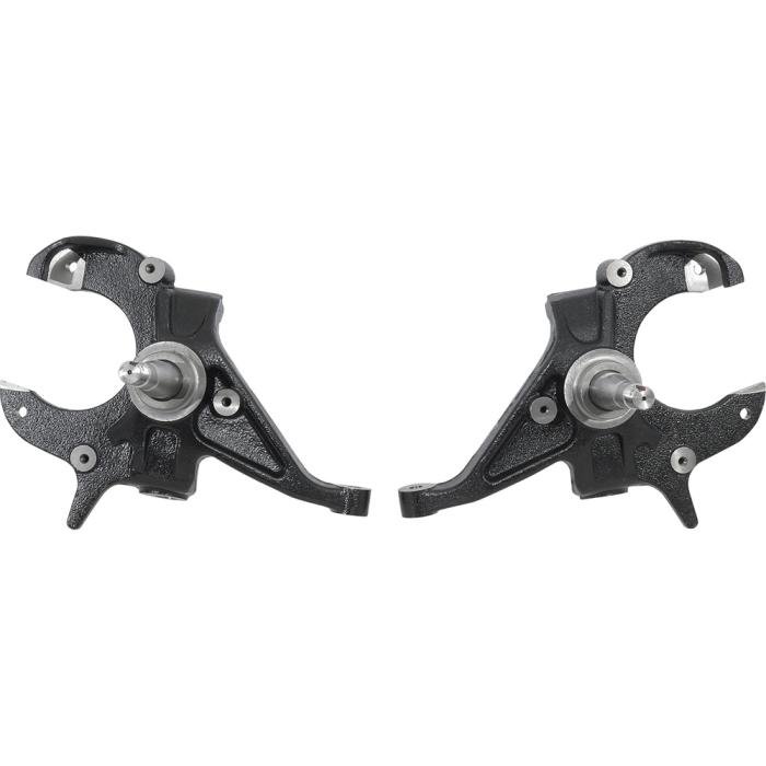 Drop spindle set for a variety of GM vehicles to provide a 2" drop. Each set is manufactured in cast iron and comes finished in black. Drop spindles are the best way to lower you truck while maintaining a stock ride and handling. Replaces LH and RH sides.
