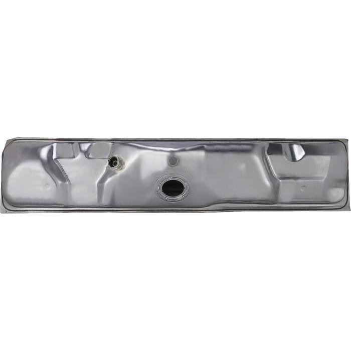 Reproduction side mount gas tank for 1985-86 Ford F-100, F-150, F-250, F-350 Pickup Trucks. This direct replacement steel tank installs in the stock location using the original hardware. Tank measures 58-7/8 in. x 12-1/4 in. x 12-1/2 in and holds 19 gallons of fuel. Features vent support in filler pipe. Straps not included, sold separately. Replaces OE # E5TZ-9002-L.