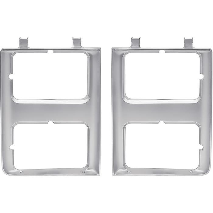 Reproduction of the original headlight bezels designed for use with 1985-88 Chevrolet Pickup Trucks, Blazer and Suburban models with single headlamp and without chrome grill. Each bezel is manufactured in injection molded ABS to factory specifications replicating the original in design, appearance, and fitment. Will replace the original bezel exactly. Sold in pairs.
