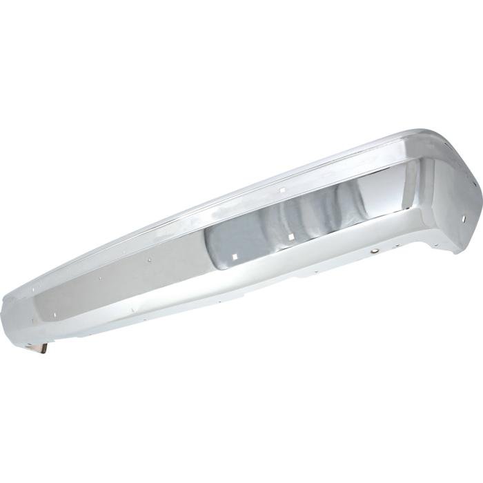 Reproduction front bumper without impact strip holes for 1987-91 Ford F-Series Truck and Bronco. This bumper features heavy gauge cold rolled steel construction with the correct mounting holes for the factory mounting brackets and hardware. It is coated in a quality chrome finish. Does not include brackets or hardware.