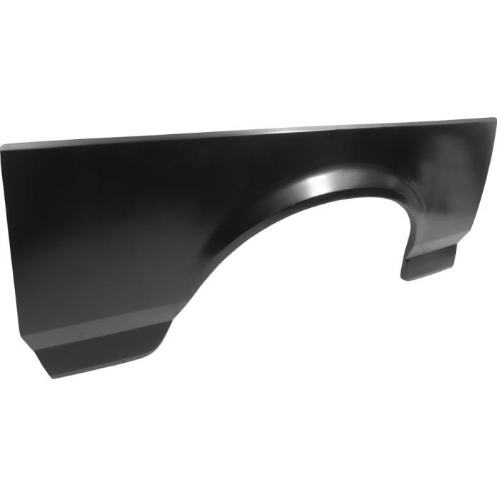 Reproduction OE style outer bedside / bedskin extension wheel arch for 1987-97 Ford F-Series StyleSide pickup trucks. This stamped 19 gauge steel bedside features the correct shape, size, length and holes to fit like original. Replaces the center section of the outer bedskin. Comes with a black EDP coating for rust and corrosion prevention. Measures 59" wide x 28" high For use on the RH passenger side.