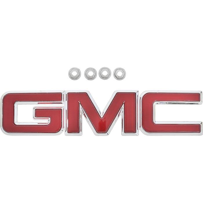 Reproduction "GMC" nameplate grill emblem for 1988-02 GMC truck models. Injection molded and chrome plated with red GMC insert as original. Hardware is included, for installation.