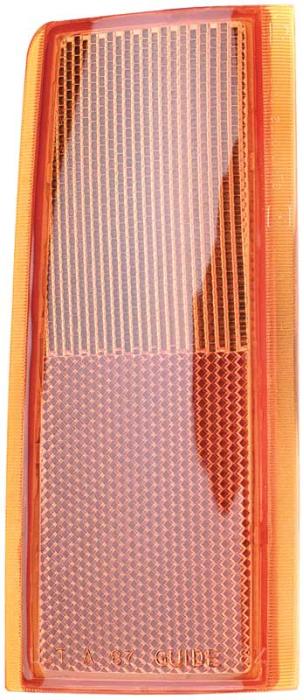 Reproduction front side marker lens for 1988-00 Chevrolet and GMC C/K pickup and SUV models without chrome grill and with single sealed beam headlamps. Each side marker lens assembly features the correct shade of amber and is produced by the OE factory for an authentic fit and appearance. Fits RH passenger side.
