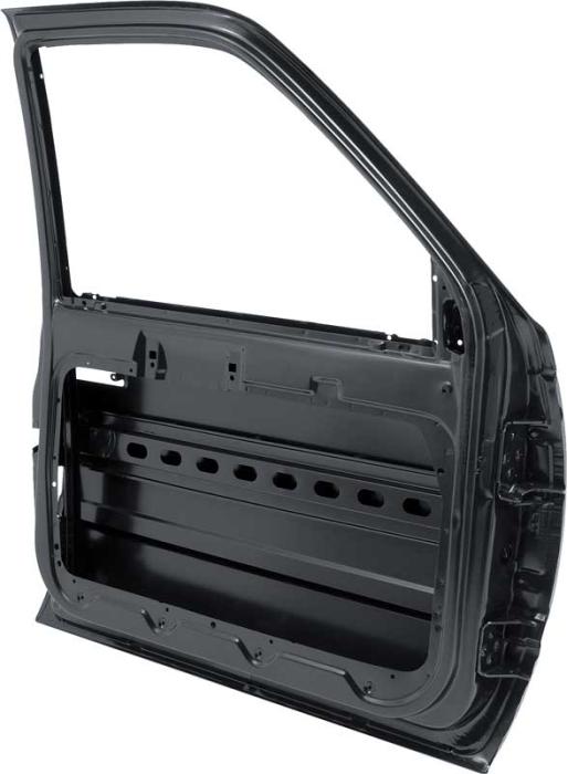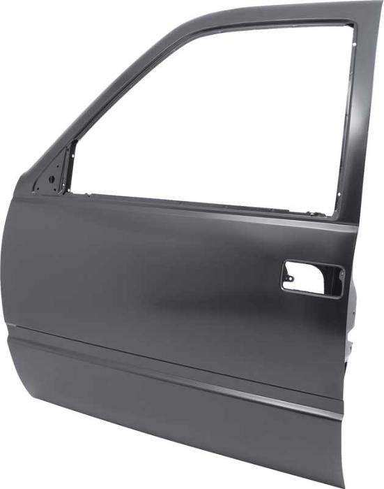 Reproduction front door shell for 1988-2000 Chevrolet and GMC pickup trucks, 1992-94 Blazer, 1995-99 Tahoe, and 1992-99 Yukon and Suburban models. Each door shell is manufactured in stamped steel to factory specifications, replicating the original in design, fit, and appearance. Finished in a black EDP coating to provide long lasting rust and corrosion resistance. A perfect replacement for damaged, rusted, or worn-out original door shells.