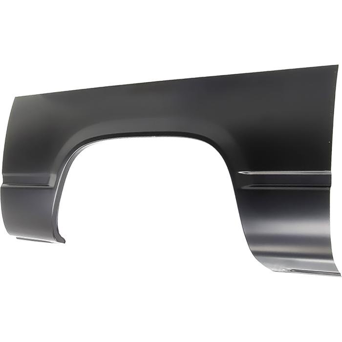 Reproduction upper wheel opening repair panel for 1988-2000 GMT400 Series C/K Fleetside Pickup models. Manufactured in quality stamped steel to the original configuration. This panel is ideal when you only need to repair a small section of a larger panel. Approximately 31" H x 60" L. Be sure to match the panel to the area in need of repair before cutting your original panel. Comes finished in black EDP coating for rust and corrosion prevention. Note: Not for use with Dually models.