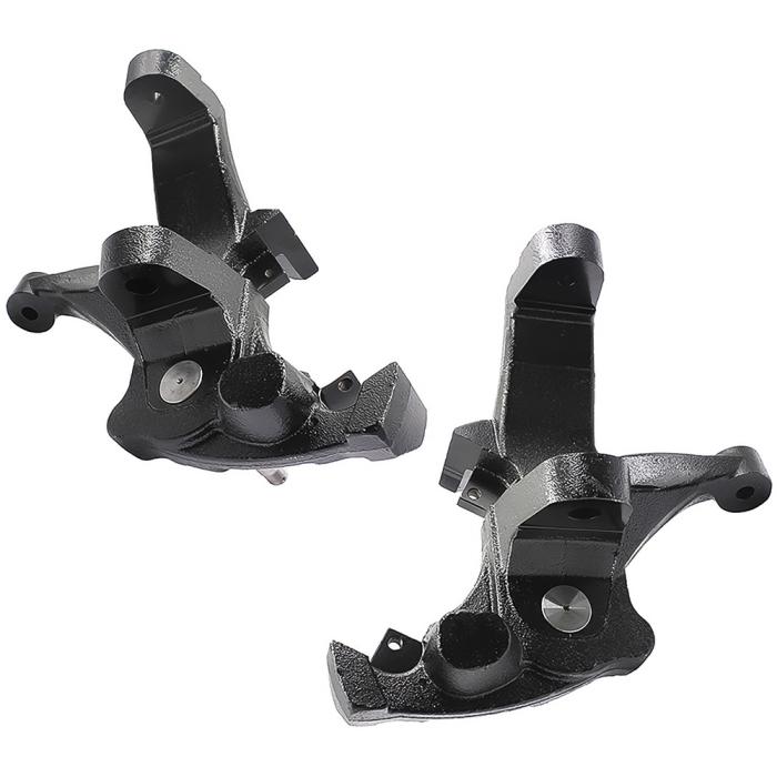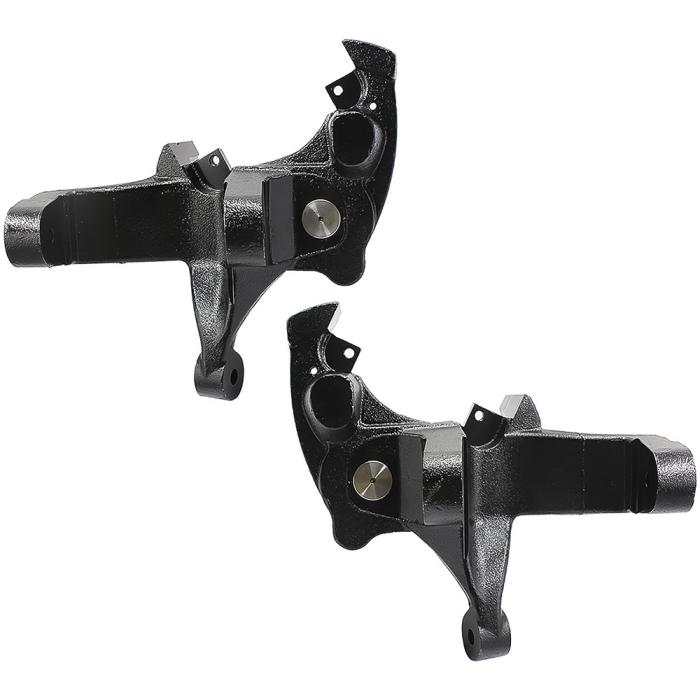 Lift spindles are a good way to gain ground clearance on your truck while maintaining a stock ride and handling. This kit includes a pair of lifting spindles for 1/2 Ton, 2WD Extended Cab models with 5-lug rims, and 1.25" thick brake rotors. Produced in high grade iron material for superior durability. This set is designed to provide a 4" lift that maintains a comfortable ride quality. Sold as a pair.