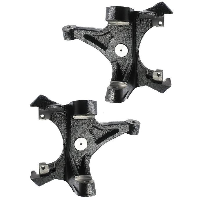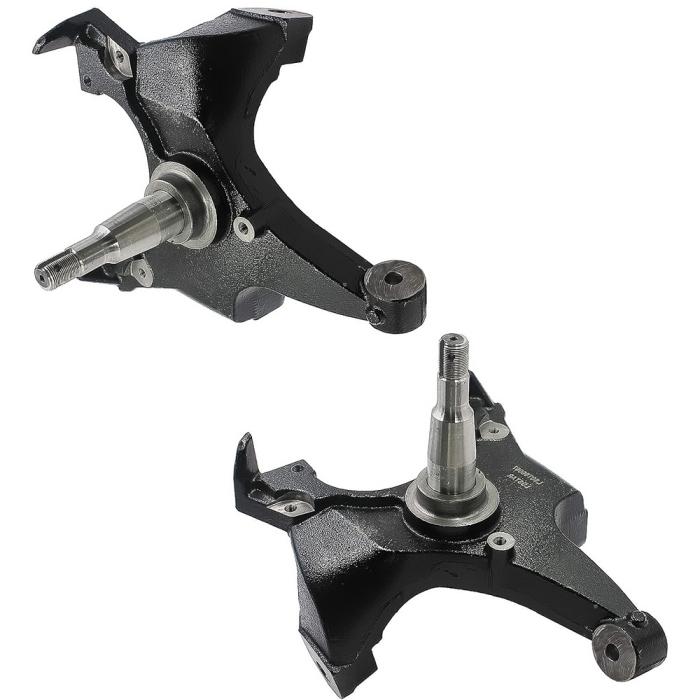 Drop spindles are the best way to lower you truck while maintaining a stock ride and handling. This kit includes a pair of 2" lowering spindles for 1/2 Ton, 2WD models with stock rotors. Produced in high grade iron material for superior durability. This set is designed to provide a 2" drop that maintains a comfortable ride quality. Includes RH and LH spindles. Sold in pairs.