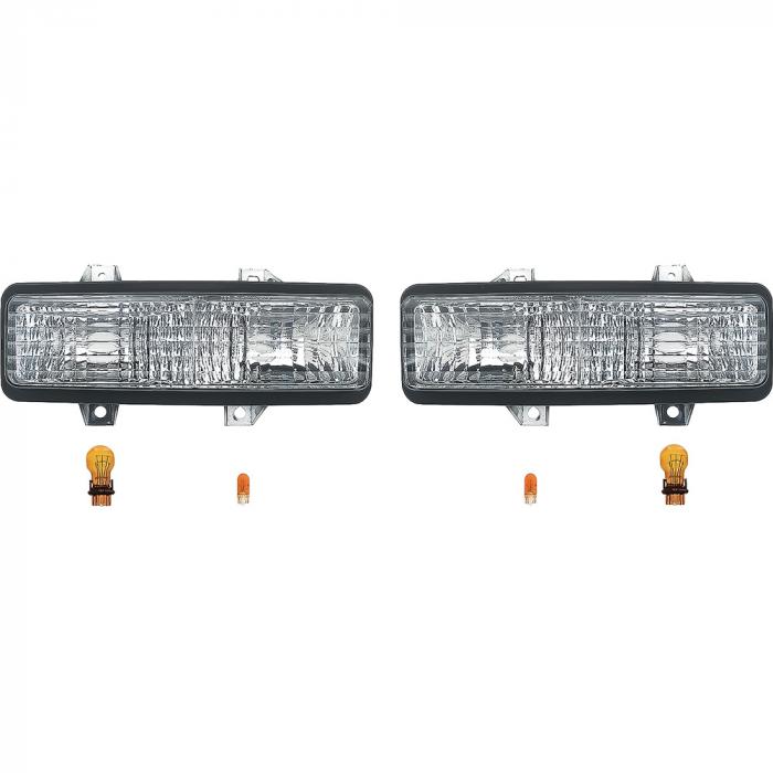 Park lamp set for 1989-91 Chevrolet, GMC pickup, Blazer, Jimmy, and Suburban models with dual headlamps. This set is designed to original equipment specifications and easy to install. Each park lamp features a durable clear lens and ABS plastic housing to ensure brilliant light output. 50 State DOT/SAE legal when used with included amber bulbs. Existing hardware can be used to install the park lamps. Sold in pairs. Bulbs included.