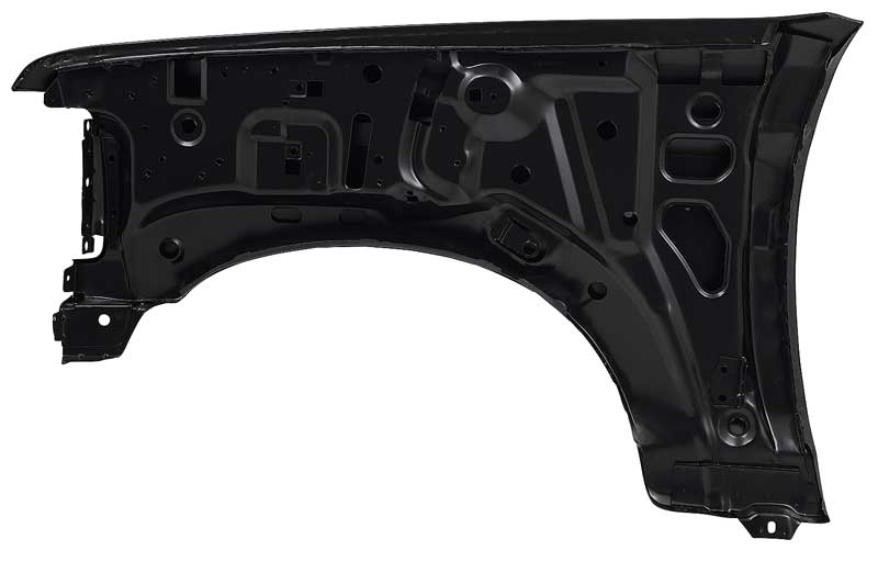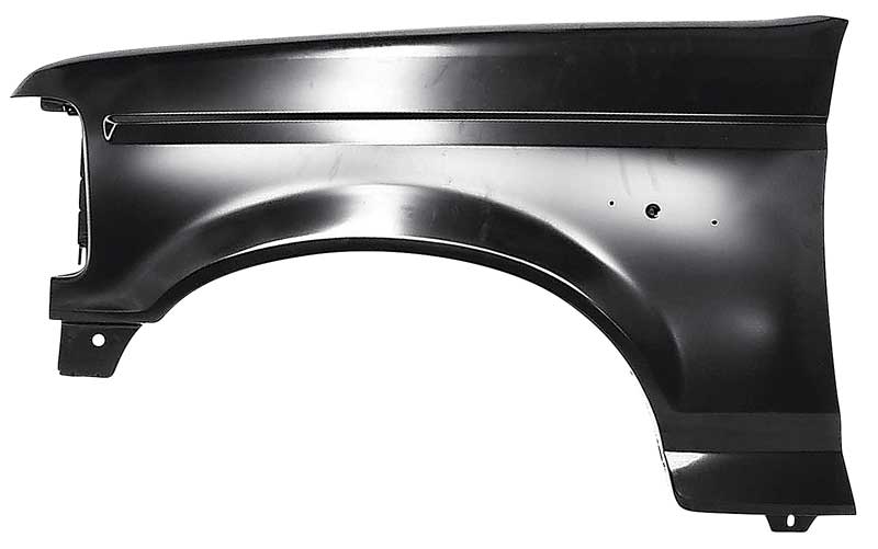 Reproduction front fender for 1991-96 Ford F150, F250, F350, and Bronco models. Each front fender is manufactured in stamped steel to original factory specifications featuring correct contours for an authentic appearance and fit. Comes finished in a black EDP coating for rust and corrosion prevention. For use on RH passenger side