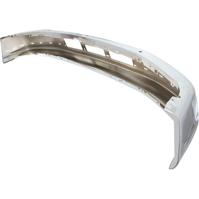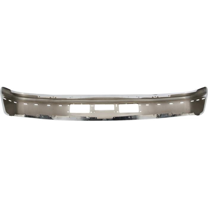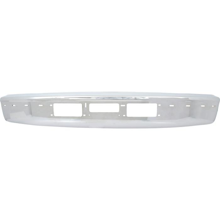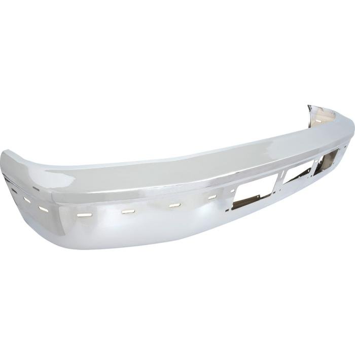 Reproduction chrome front bumper with impact strip holes for diesel powered 1992-96 Ford F150, F250, F350 pickup trucks, and Bronco models. This bumper features heavy gauge cold rolled steel construction with the correct mounting holes for the factory mounting brackets and hardware. Each bumper features a bright chrome plated finish. Brackets and hardware available separately.