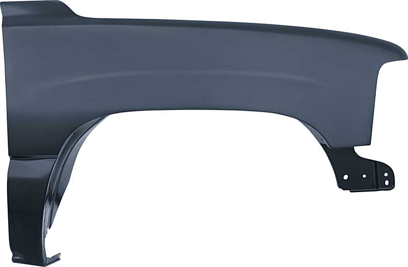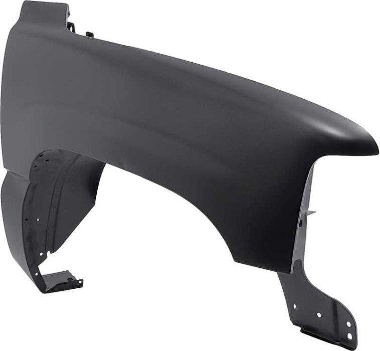 Reproduction front fender for 1999-2002 Chevrolet Silverado, 2000-2006 Tahoe, and Suburban crew-cab and dually models. Each fender is manufactured in stamped steel to original factory specifications featuring correct contours for an authentic appearance and fit. Comes finished in black EDP coating for rust and corrosion prevention.