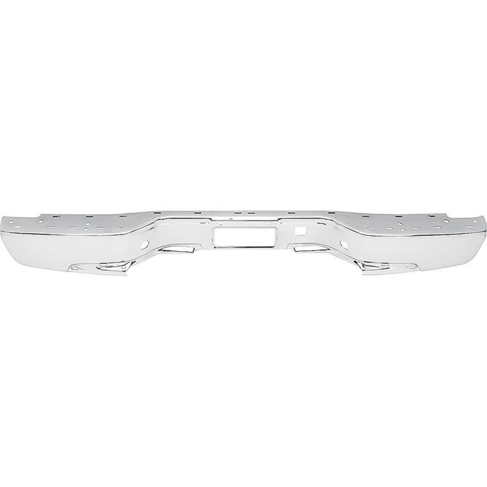 Reproduction rear bumper for various 1999-06 Chevrolet and GMC truck and 2000-06 SUV models. Each rear bumper is manufactured to OE specifications ensuring a proper fit and appearance. Will replace the original bumper exactly and features a bright chrome finish. Produced without impact strip holes; With center step pad provision. Step Pads not included. Replaces OE # 12473000 or Partslink # GM1102411.
