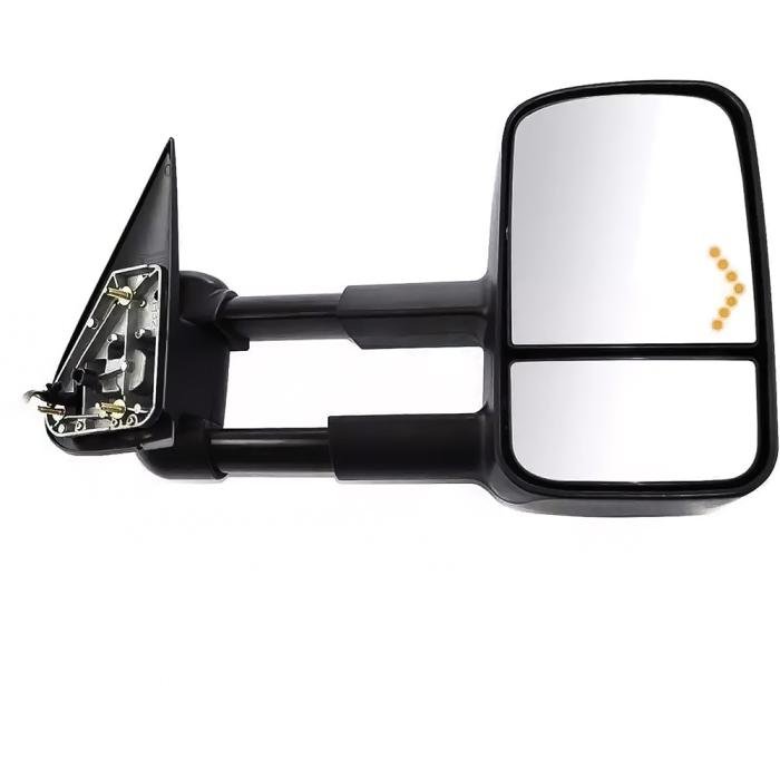 Reproduction heated power remote side view towing mirrors for 2003-07 GMT800 Silverado/Sierra, 2003-06 Avalanche, Tahoe, Yukon, and 2003-06 Suburban, Yukon XL models. Features black textured finish. Fits Right Hand (Passenger) Side. Replaces OE # 15860541, 15904035, OR Partslink # GM1321355.